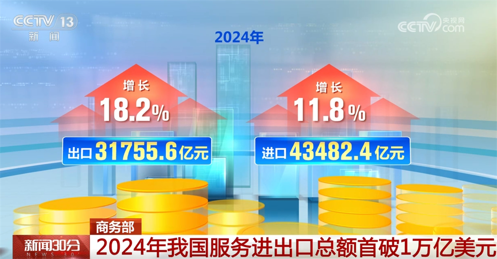商务部数据显示,我国办事商业实现快速增加,全年办事进出口总额初次冲破1万亿美元,规模创下汗青新高,布局持续优化,展示出广漠的成长潜力。2024年,中国全年办事进出口总额75238亿元,同比增加14。4%。此中,增加18。2%;进口43482。4亿元,增加11。8%;办事商业逆差11726。8亿元,比上年削减314。3亿元。